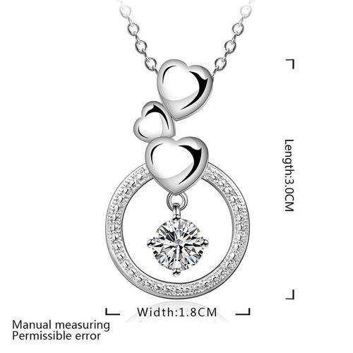 925 Sterling silver plated triple heart circle crystal pendant & necklace