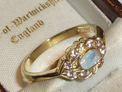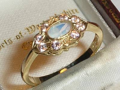 BEAUTIFUL 9CT GOLD PINK STONE & FIERY OPAL RING - O