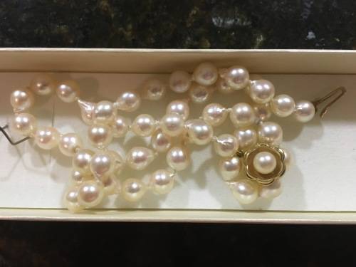 For sale is this absolutely beautiful genuine cultured pearl necklace which has a 9ct yellow gold clasp. It is a one strand pearl necklace measuring +/- 46cm in length. There 49x7mm pearls. The pearls have a beautiful lustre to them. A high quality piece of jewellery. Valuation certificate for R15 000 included.