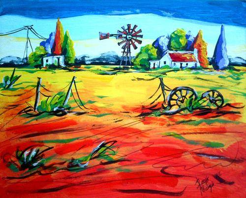 Regis Manja was born 1977 in Zimbabwe and has had a love for art since childhood. Regis is self taught and his talent is a raw natural talent. He takes inspiration from daily life capturing it in beautiful and vibrant colours. Regis travels from town to town making a living from his art