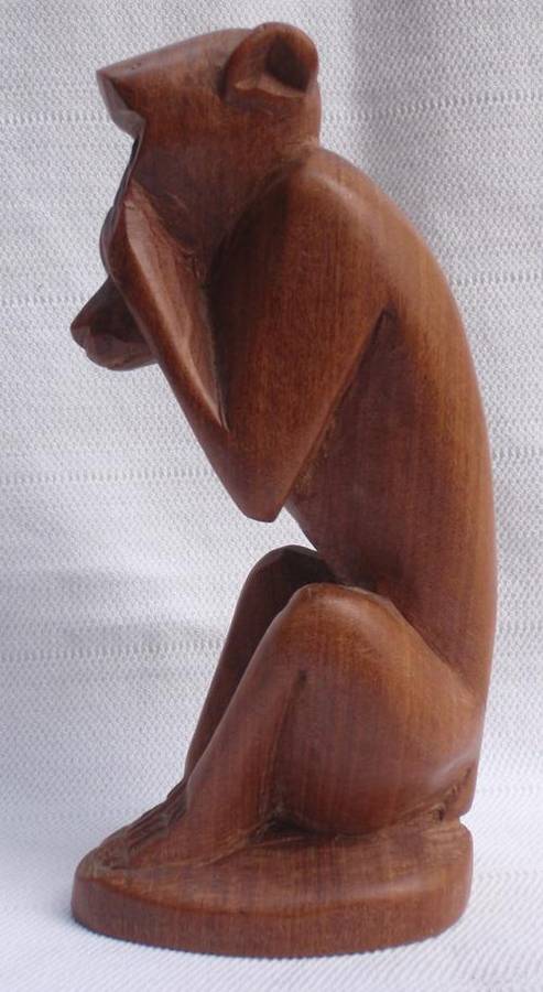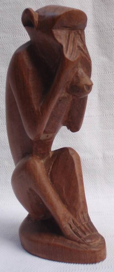 BEAUTIFULLY HAND CARVED AFRICAN ART - 'SEE NO EVIL' SADLY HE IS THE ONLY REMAINING ONE OF HIS TROOP - BUT A REAL PIECE OF ART WORTH HAVING. SIZE: height 15cm