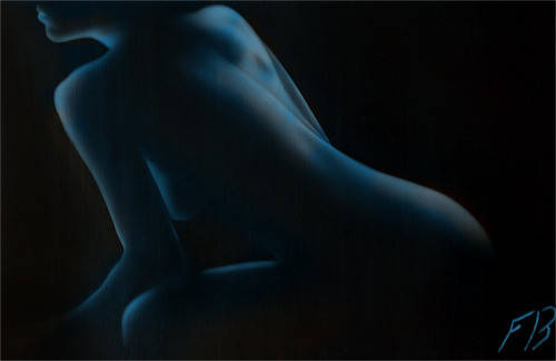 Naked lady. Body is shades of light blue and white.