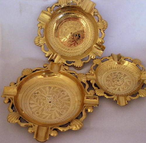 Set of 3 Hand made Brass Ashtrays.