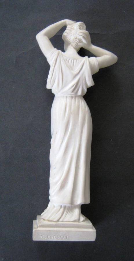 BEAUTIFUL GREEK FEMALE STATUE BY THE FAMED ITALIAN SCULPTER FROM ITALY, GINO RUGGERI, IN ALABASTER AND RESIN. FIGURE IS 100% PERFECT. HEAVY AND SMOOTH. STANDS 25 CM HIGH.