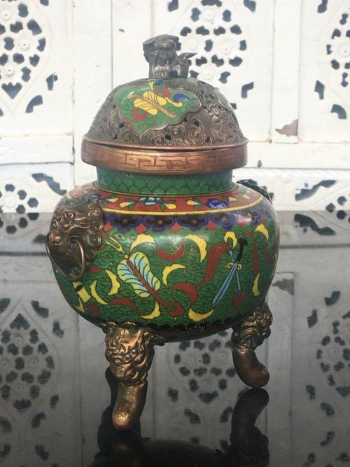 Incense Burner/Censer with Foo Lion Finial,Lion looped Handles
