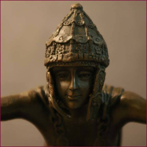 Ever mindful of the culture of his day, Romanian-born Chiparus sculpted Thais, an Alexandrian hetaera, after a popular 19th-century opera. Intricately sculpted and finished in different tones, this bronze sculpture is set atop a marble base,.