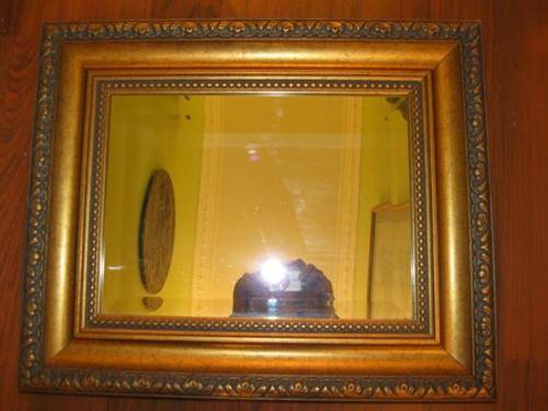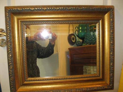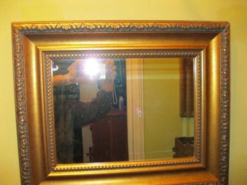 Beautiful Bevelled Gold Mirror in a very nice ornate gold frame, the size of the mirror is 56cm x 46cm and is ready to hang on your wall!!