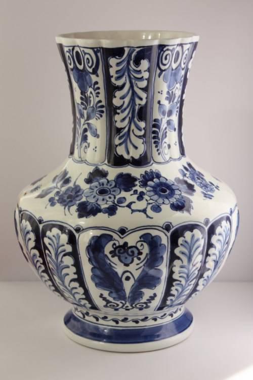 Beautiful blue and white hand painted large Delft vase (early 20th C)