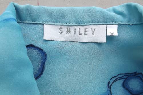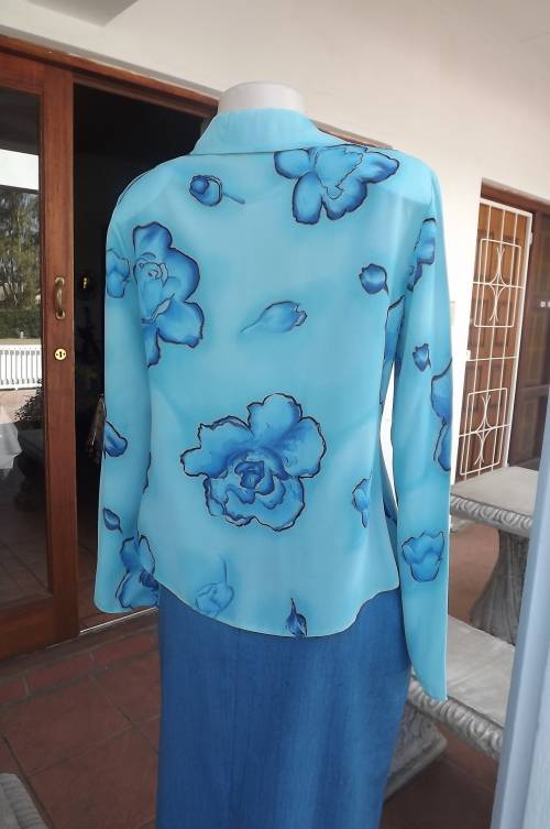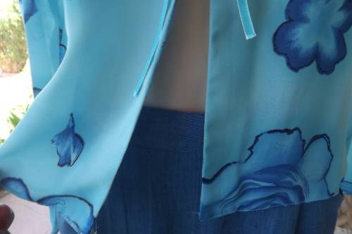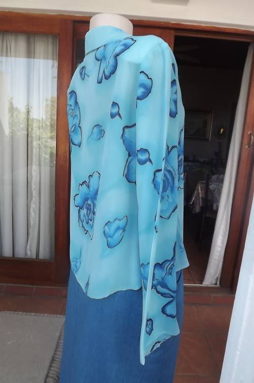 Beautiful blue short open top with darker blue floral pattern by SMILEY size 36/12.Good condition