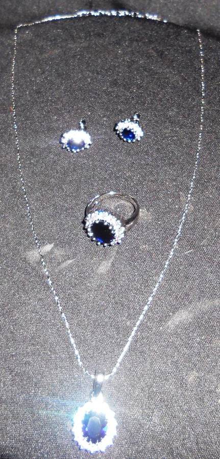 Beautiful Blue Stone Pendent With Matching Ring And Earrings Stamed 925