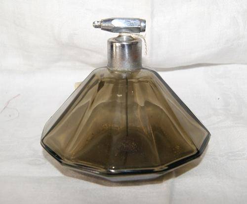 Beautiful British Art Deco Smokey Glass Perfume Atomizer