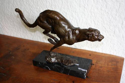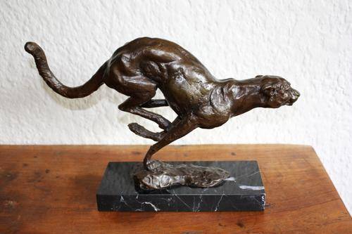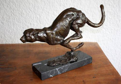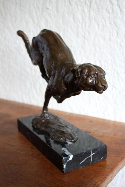 An impressive piece! Bronze cast (lost wax method) on a steel-grey marble plinth. 41cm from nose to tip of tail, 27 cm high. Shipping R180 (courier only).