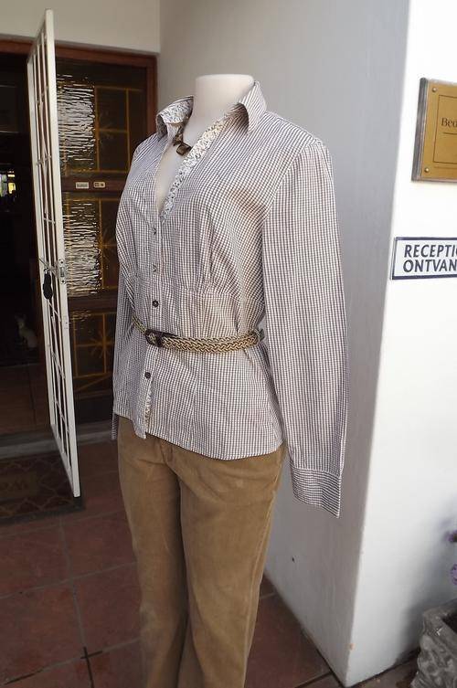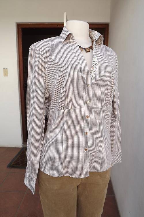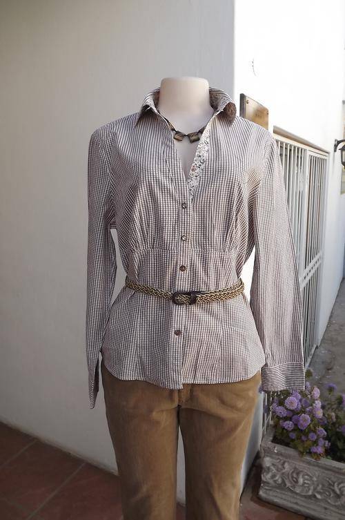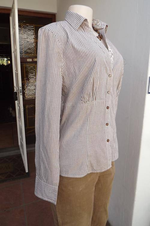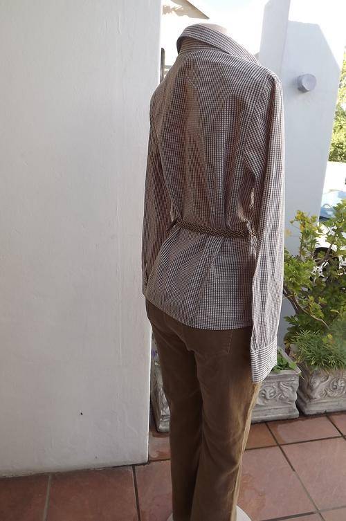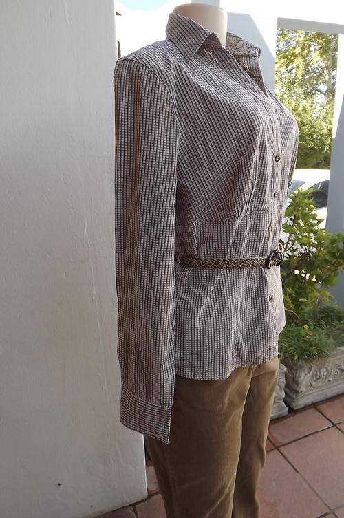 Beautiful brown & beige check Legit shirt in size 38/14.V button down front.Gathered under bustline.