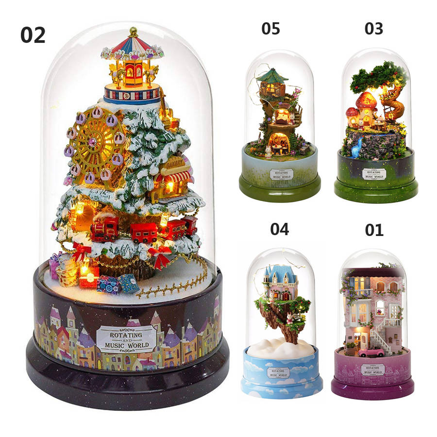 Description: Item Name:5 Types Beautiful Cabins DIY Doll House With Transparent Cover