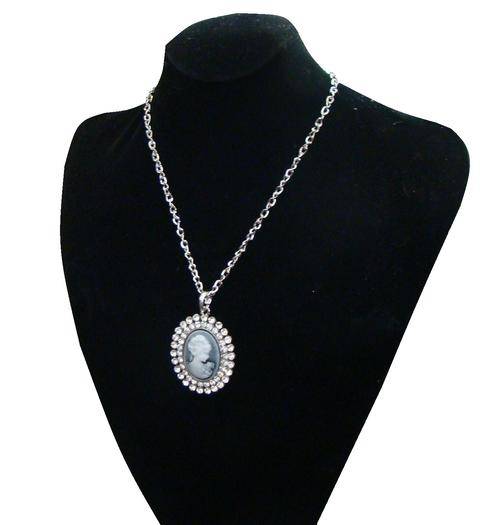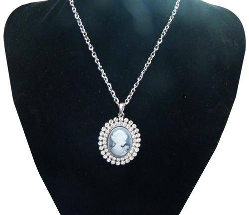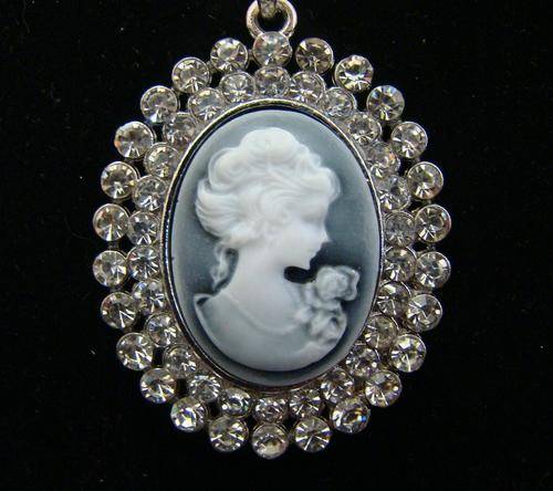 BEAUTIFUL CAMEO PENDANT ENCRUSTED IN SIMULATED DIAMONDS WITH FREE CHAIN