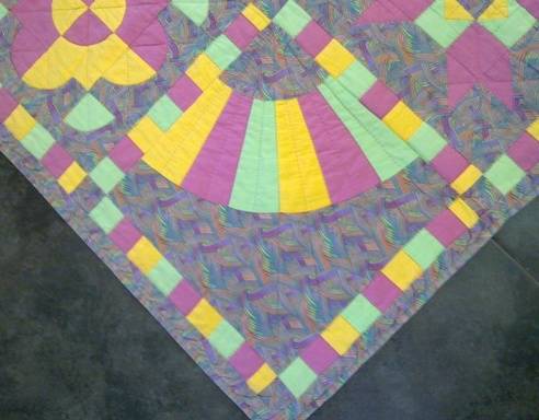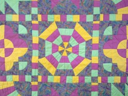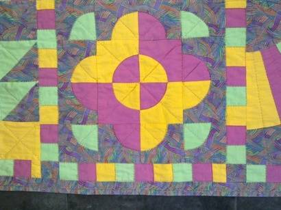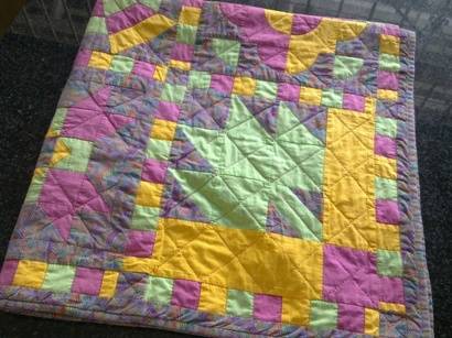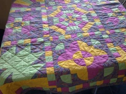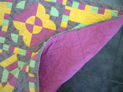 Stunning hand quilt work in lovely bright colours - a lot of work!