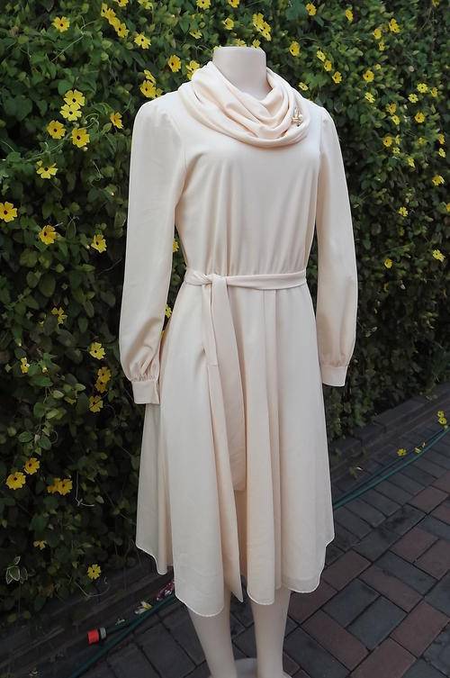 Beautiful Cream Long Cuffed Sleeve Dress with Cowl Neck Collar in size 10/34 - new condition