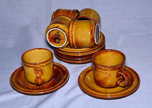 Beautiful set - 6 cups and 6 saucers. Made in South Africa by Drostdy Stoneware. Mixed earthy colours as per photos, a VERY nice coffee set.