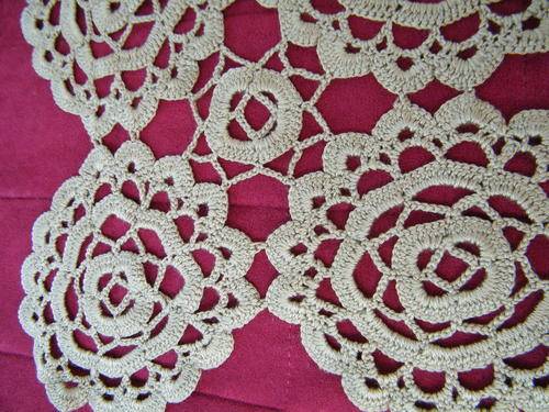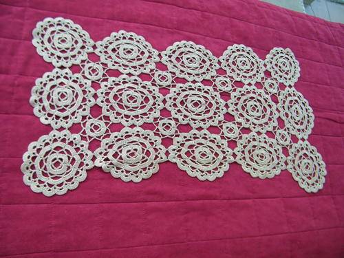 Beautiful Ecru Colour Crocheted Cotton Runner in 15 Big Circles - length 65cm, width 34cm