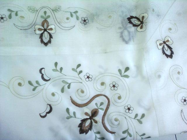 EMBROIDERY IN SHADES OF BROWN, COLOUR OF TABLE CLOTH- WHITE