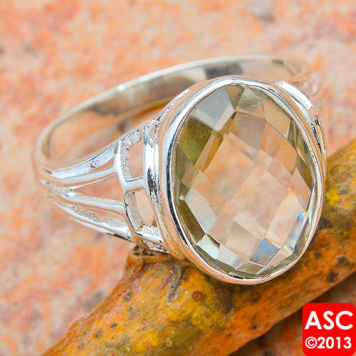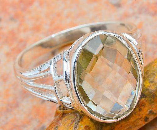Beautiful Faceted Green Amethyst (white gold plated) 925 Sterling Silver Ring
