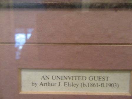 Gorgeous Framed lithograph " The Uninvited Guest" by Arthur J Elsley 1861 - 1903, size 55cm x 65cm.