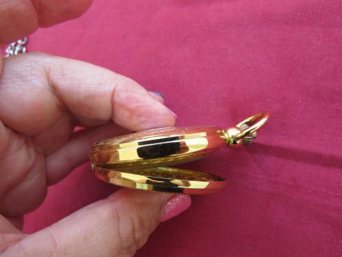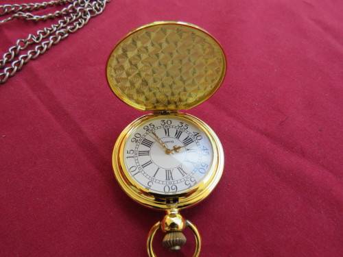 Beautiful gold toned quartz pocket watch.Roman and normal letters.Working.New condition