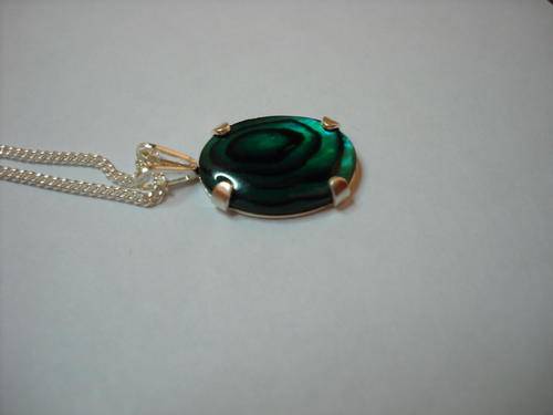 Beautiful Green Paue Shell Set In 925 Sterling Silver Pendant With Sterling Silver Chain