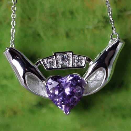Beautiful Heart Cut Tourmaline & White Topaz Set In Silver Pendant Necklace With Chain