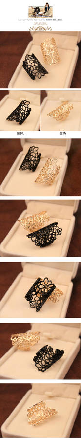 Beautiful Hollow Flower Pattern Ring - Gold, Black
