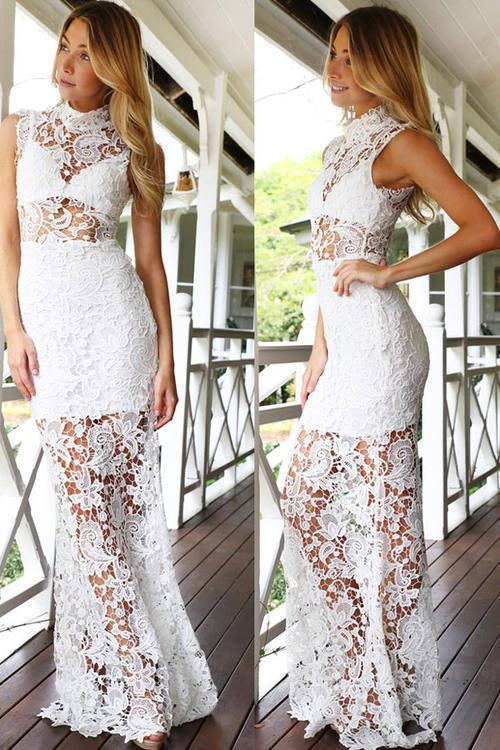 BEAUTIFUL HOLLOW OUT LACE DETAIL EVENING DRESS