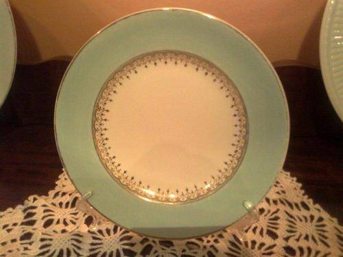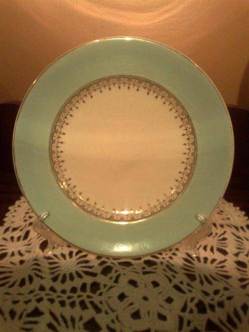 THIS IS A BEAUTIFUL GREEN SIDE PLATE WITH GOLD INNER BORDER AND GOLD RIM!!!