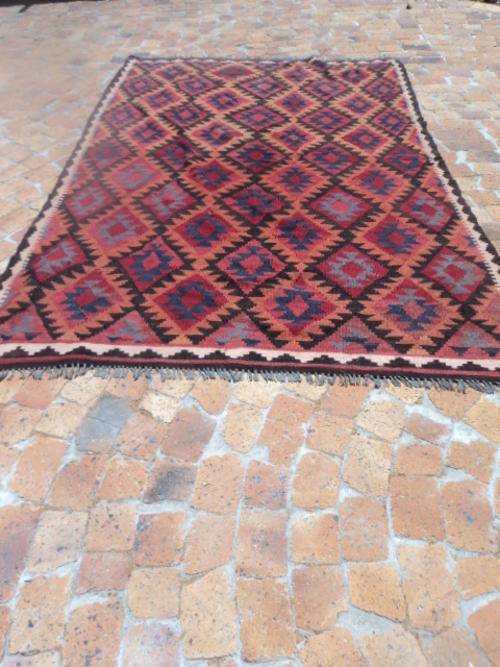 Genuine large kelim, like new, vibrant colours!!!!250 x 160Just dusty from being in storage....Shipping and Packaging is R70