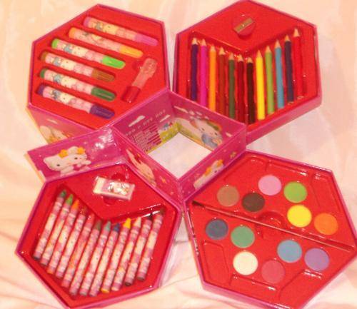 Case Flips clockwise to reveal compartments containing different sets of stationery!
