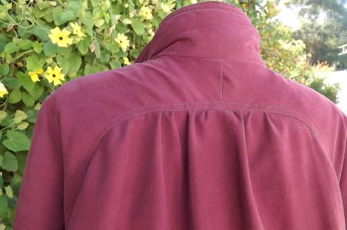 Warm light weight padded berry colour Trench coat. By DOWN TO THE YELLOW RIVER in USA. Best fit size 38/14. Close with zip and press buttons. Yoke with gathering at back for volume. Two front pockets. In very good condition.