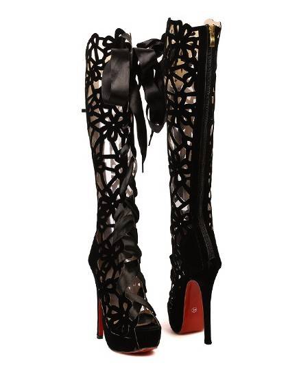 Beautiful Ladies Boots with Flower Pattern Cut Out Detail