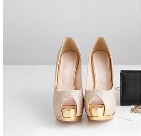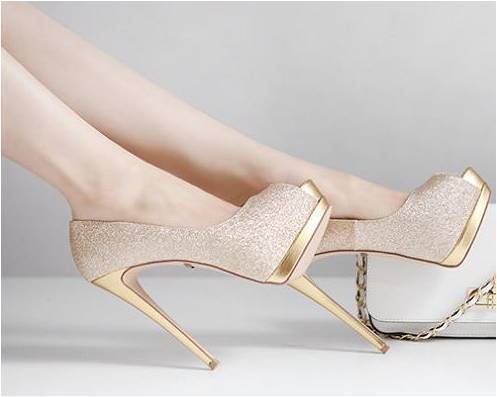 Beautiful Ladies Shimmer Effect Pumps with Gold Trim Heel & Platform