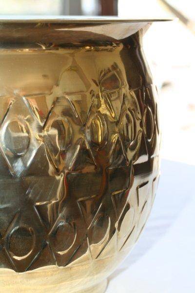 THIS LARGE BRASS PLANTER / CONTAINER IS AWESOME!!! IT HAS A VERY NICE BOWL TYPE STYLE WITH A VERY BEAUTIFUL PATTERN. IT STANDS APPROXIMATELY 235mm HIGH AND HAS A DIAMETER OF APPROXIMATELY 345mm. PLEASE VIEW THE PICS VERY CAREFULLY FOR MORE DETAIL AND THE CONDITION. POSTAGE AND PACKAGING WILL BE R65.00 COUNTER TO COUNTER DUE TO THE WEIGHT AND SIZE OR PLEASE ARRANGE TO COLLECT IN BOKSBURG!!!