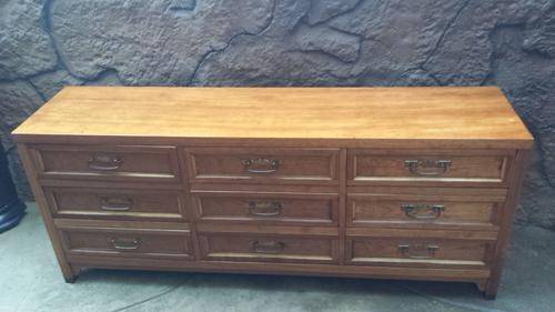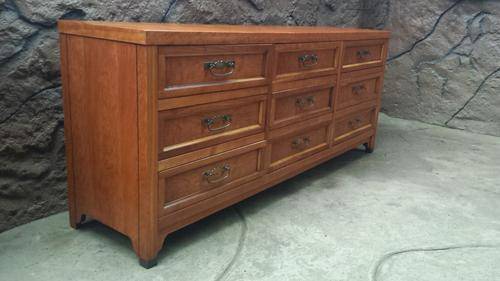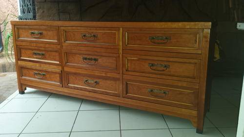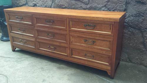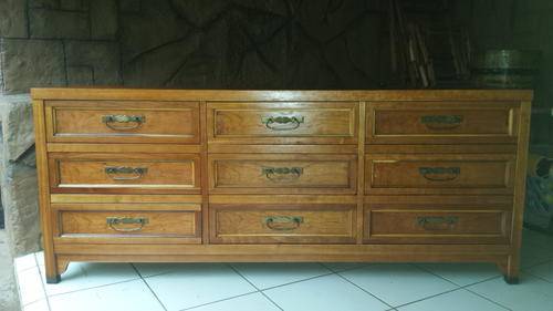Beautiful large solid wood sideboard. Just been restored, beautiful colouring and in a very good condition. Solid, very heavy and perfect to use as a sideboard. Can also be used in an office, bedroom, or anywhere where you need a lot of packing space. Has all its handles, drawers big and slide easily. Very nice piece of furniture.