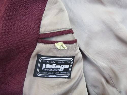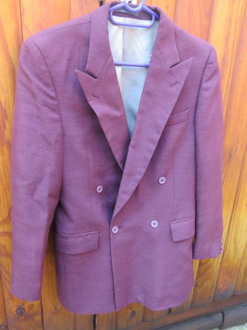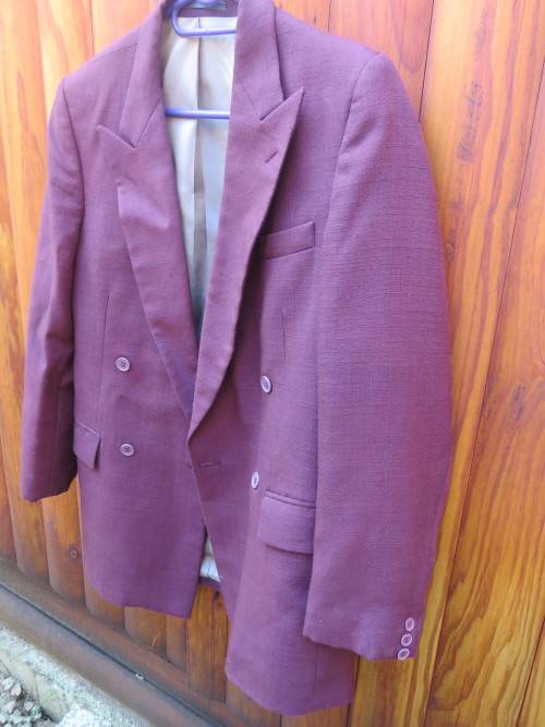 Beautiful men's maroon double breast jacket in size 36 reg.By THE SUIT KING'S.Poly and viscose blend