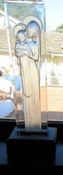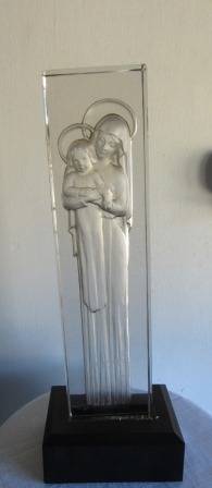 Beautiful Mother & Child in frosted glass set in a clear glass large column, the item stands 38cm tall x 4cm