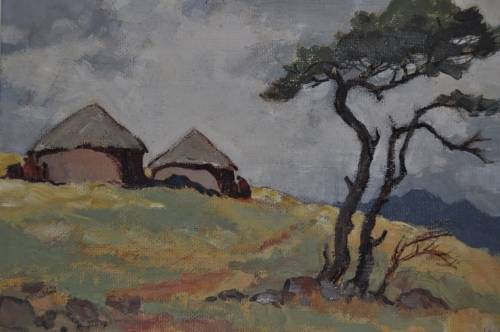 BEAUTIFUL OIL ON BOARD AFRICAN SCENE,VERY WELL DONE