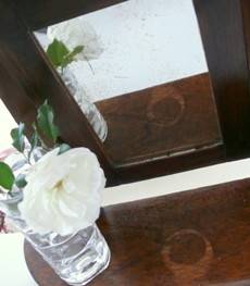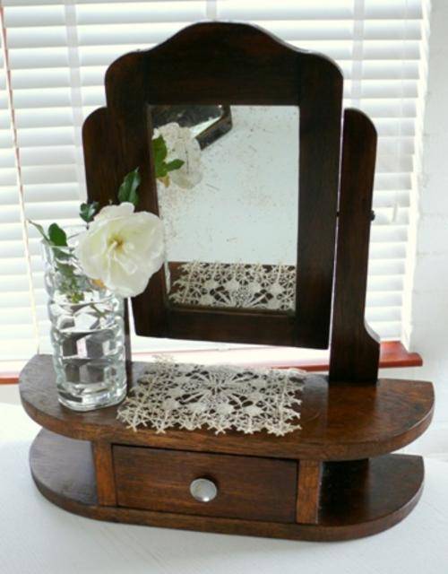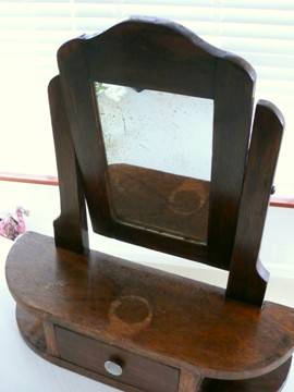 Pls note stains on mirror due to age.The mirrorglass can be easy replaced if preferred.Otherwise it has this old charme,what people like..