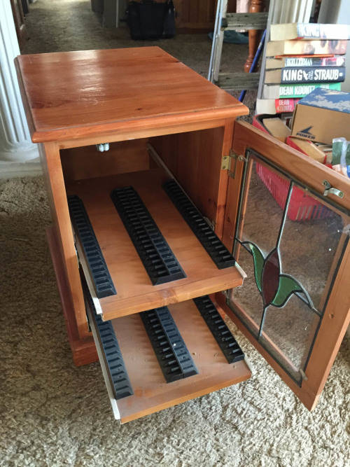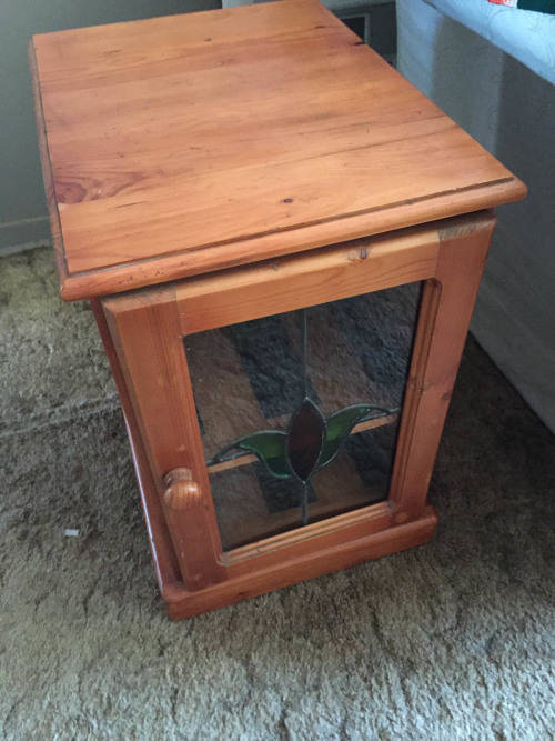 BEAUTIFUL SOLID ORGEON CD CABINET WITH DECORATED LEAD DOOR IN GREAT CONDITION, HOLDS 80CDS. tHIS CAN BE USED FOR SO MANY OTHER THINGS AND LOOKS AWESOME IN ANY SETTING. Dimensions are height 55cm, width 36cm and depth 47cm. Can be collected or delivered at cost to be discussed once location is known in Jhb/Boksburg areas.