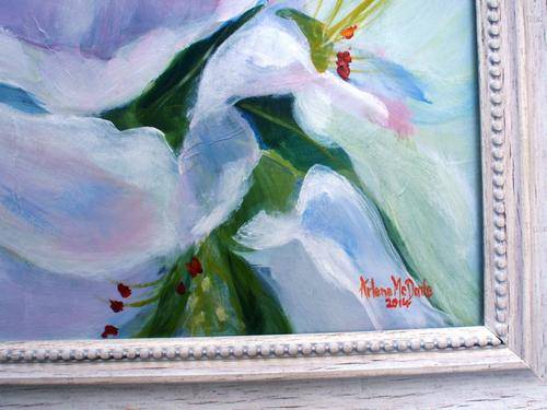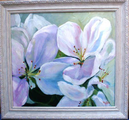 BEAUTIFUL ORIGINAL PAINTING BY ARLENE McDADE 'FIFTY SHADES OF WHITE' DELICATELY PAINTED IN A SOFT IMPRESSIONIST STYLE - SIGNED AND DATED 2014. FRAMED IN A GORGEOUS FRAME - THICK SUBSTANTIAL (EXPENSIVE) HAS LIME WASH AND CARVED EFFECT. WELL BELOW GALLERY PRICE!!! SIZE: 95.5CM X 88.5CM (this includes frame which is 11cm in width!)