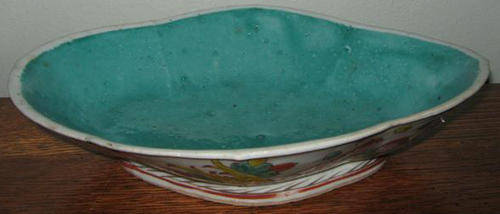 BEAUTIFUL OVAL SHAPED ORIENTAL SERVING BOWL WITH HAND PAINTED FLOWERS IN PERFECT CONDITION. LENGTH 26.5CM, WIDTH 18.5CM, HEIGHT 5.7CM.