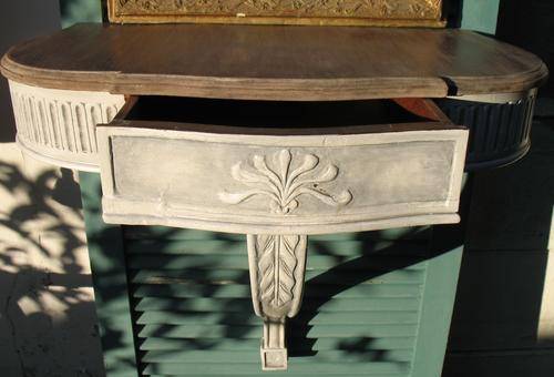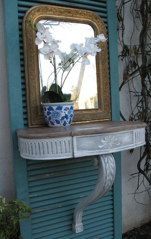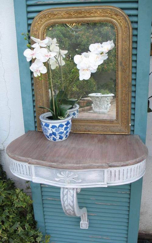 Beautiful pair of vintage wall mounted carved wooden table stands