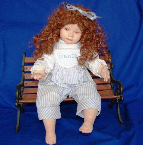 Beautiful Porcelain Doll (Soft Body). Cast Iron & Wood bench included - Doll length 560mm