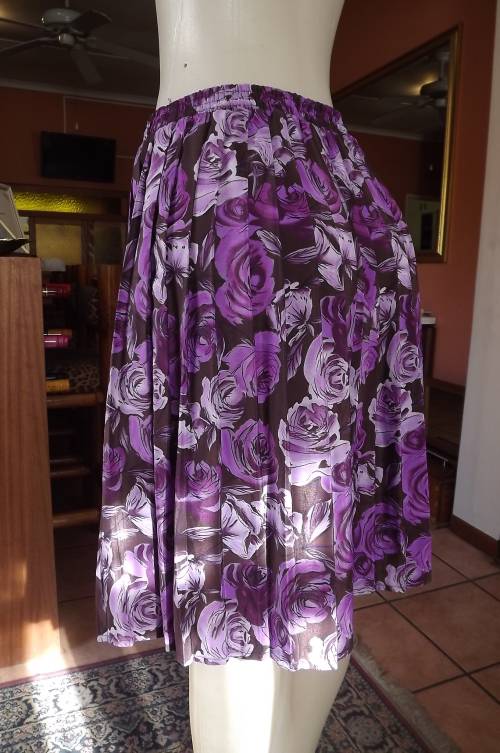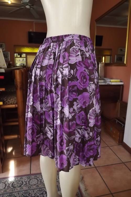 Beautiful purple floral permanent pleated Midi skirt by AREZZO Fashion Wear size 38/14.