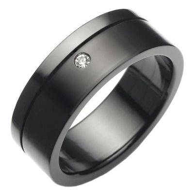 This modern art ring features a clean, black steel design - beautifully adorned with a sparkling CZ stone.